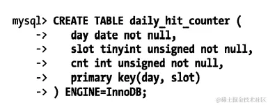 一个常见的需求是每隔一段时间开始一个新的计数器(例如,每天一个)。如果需要这么做,则可以再简单地修改一下表设计: