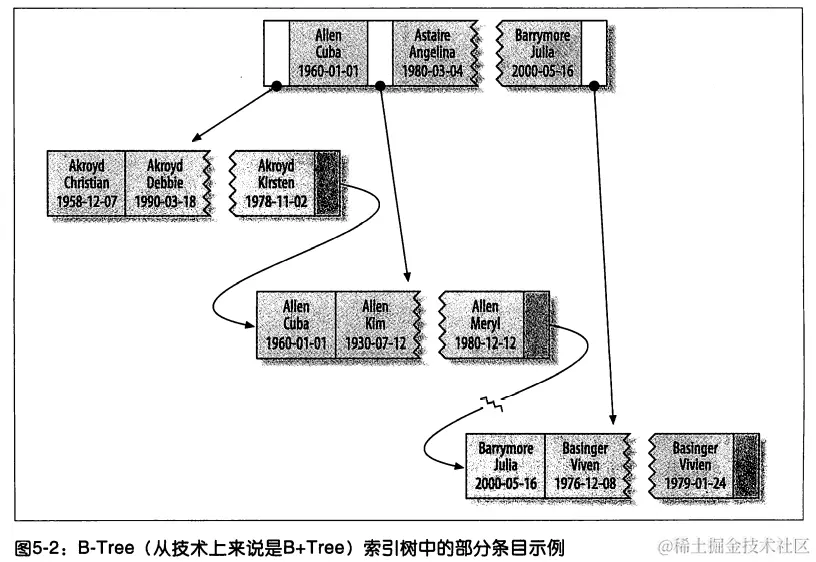 例如前面提到的索引可用于查找姓在Allen和Barrymore之间的人。这里也只使用了索引的第一列。