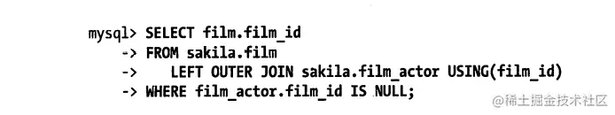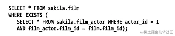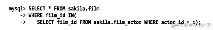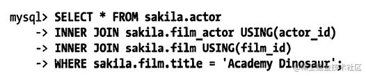 如果你想查询所有在电影Academy Dinosaur中出现的演员,千万不要按下面的写法编写查询:
