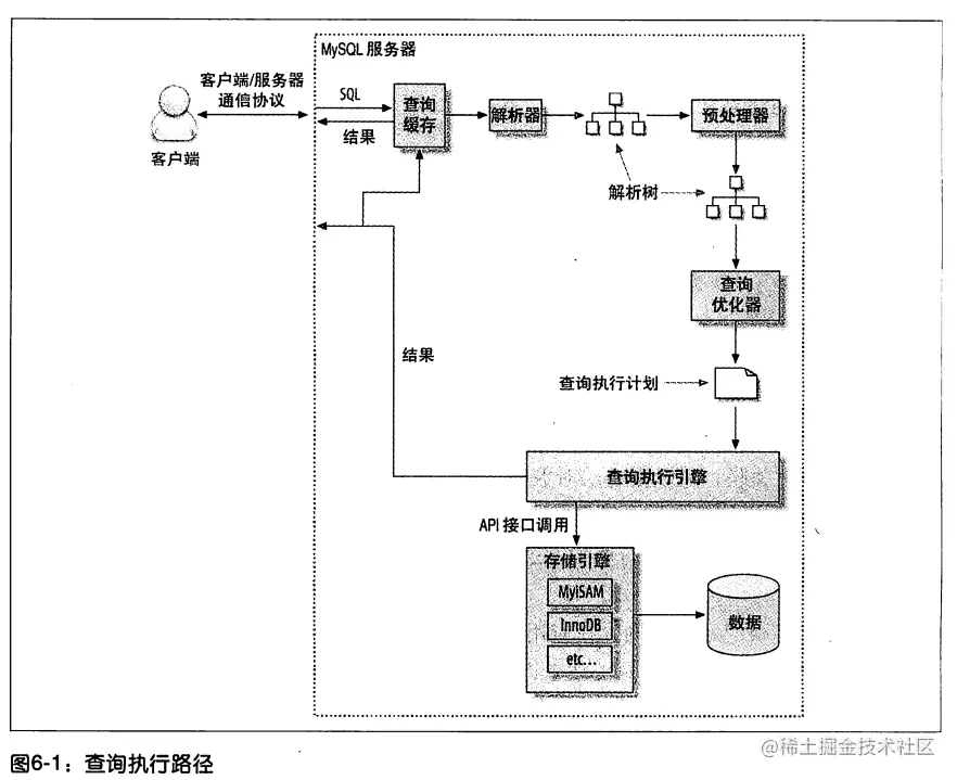 - 服务器先检查查询缓存,如果命中了缓存,则立刻返回存储在缓存中的结果。否则进入下一阶段。