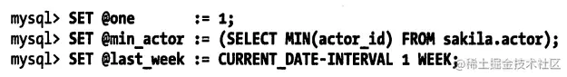 不仅是在SELECT语句中,在其他任何类型的SQL语句中都可以对变量进行赋值。事实上,这也是用户自定义变量最大的用途。例如,可以像前面使用子查询的方式改进排名语句一样来改进UPDATE语句。