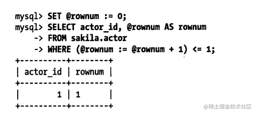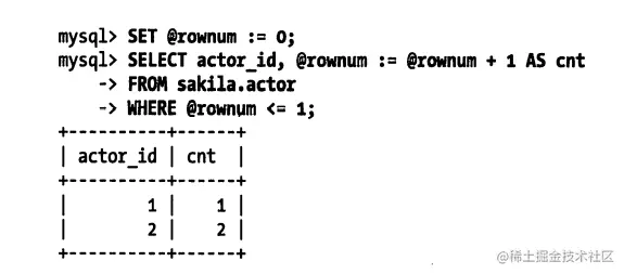 不过,我们需要使用一些技巧来获得我们希望的结果。有时,优化器会把变量当作一个编译时常量来对待,而不是对其进行赋值。将函数放在类似于LEAST()这样的函数中通常可以避免这样的问题。另一个办法是在查询被执行前检查变量是否被赋值。不同的场景下使用不同的办法。