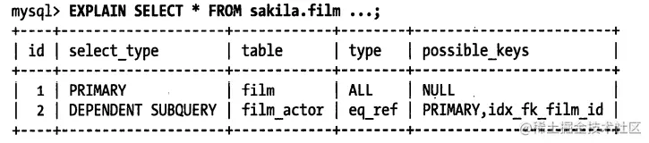 - 重写这个复杂的查询,让 MySQL优化器能够以更优化的方式执行这个查询(这是本章后续需要讨论的问题)。