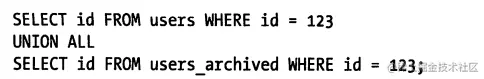 下面的查询会在两个地方查找一个用户:一个主用户表、一个长时间不活跃的用户表,不活跃用户表的目的是为了实现更高效的归档: