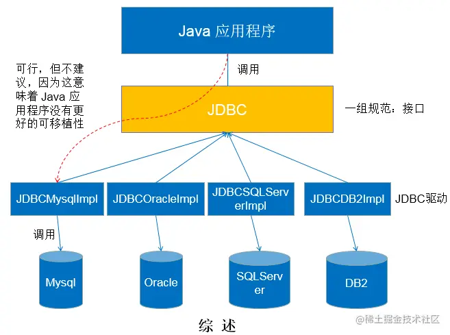 - JDBC是java访问数据库的基石,JDO、Hibernate、MyBatis等只是更好的封装了JDBC。