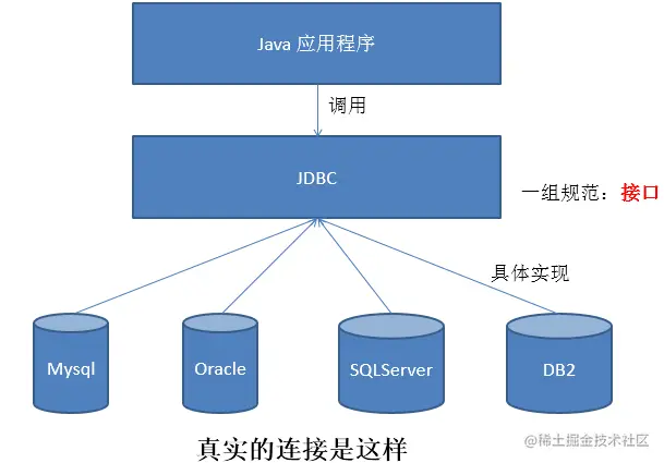 不同的数据库厂商,需要针对这套接口,提供不同实现。不同的实现的集合,即为不同数据库的驱动。 ————面向接口编程