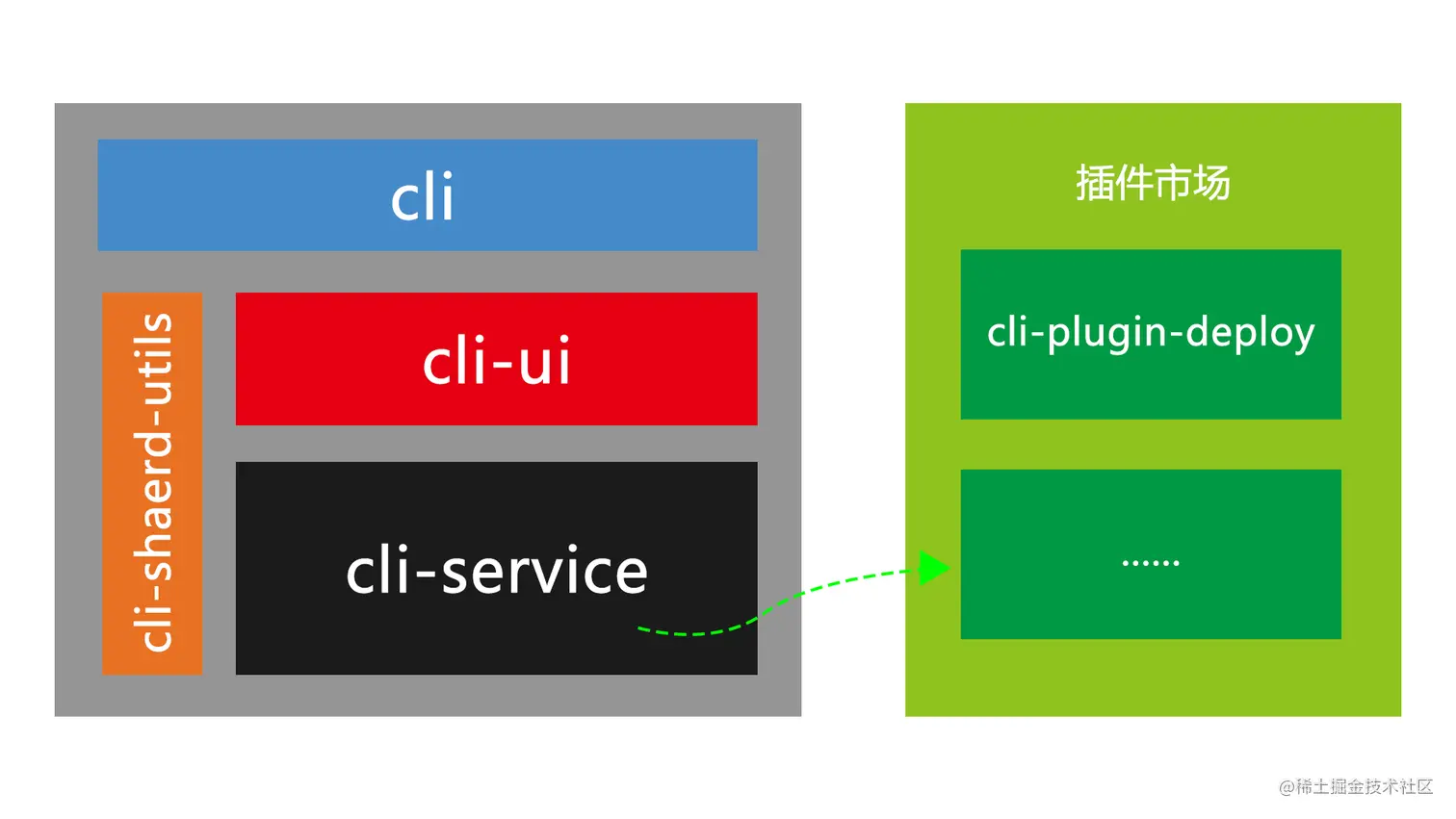 对于一款脚手架而言,不只是单单实现一个部署的方案,因而在脚手架架构设计方面,采用了插件化的插件模式,通过插件化的机制将所需要的功能部分进行提供