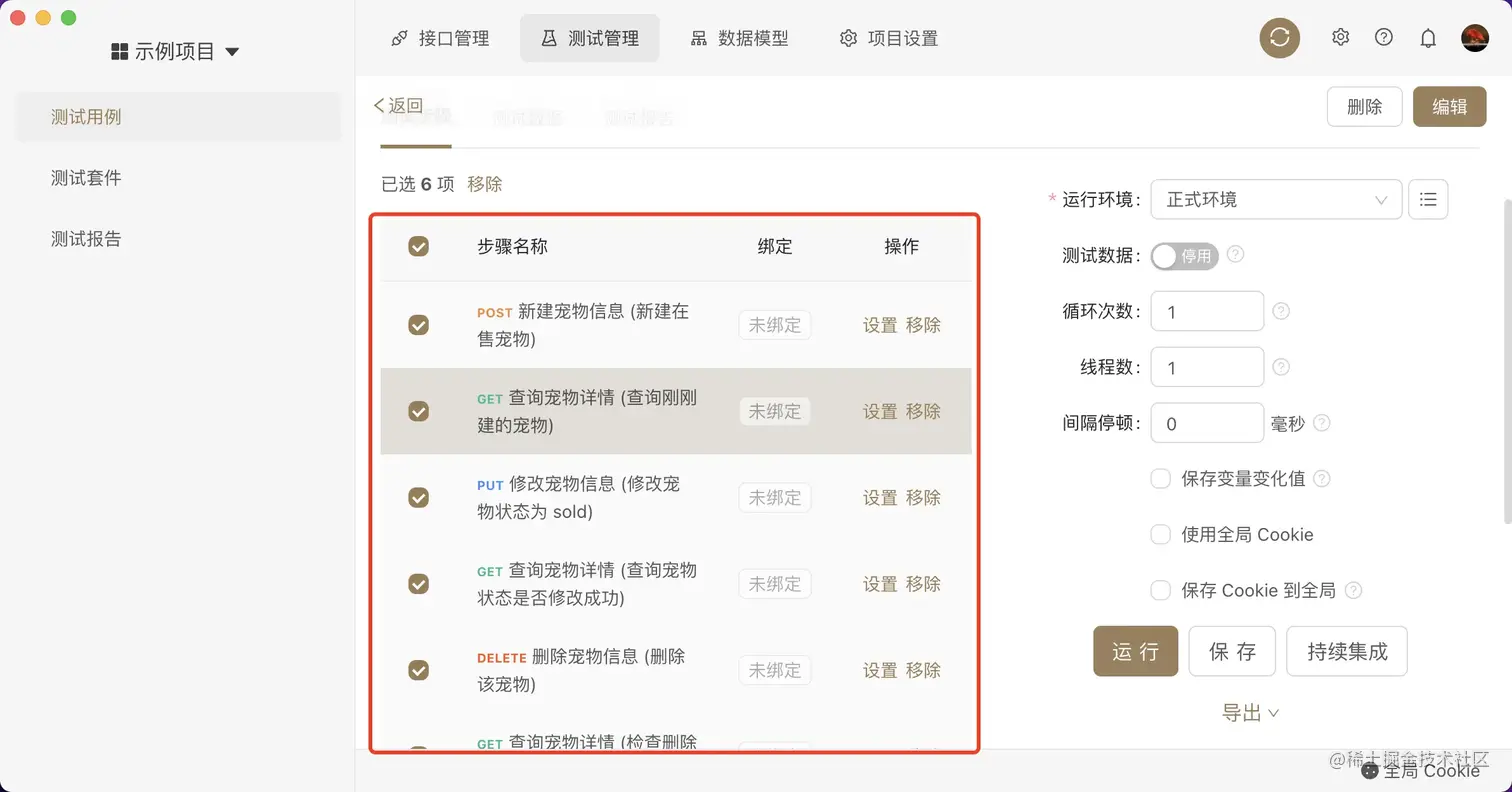 对于每一个 Request 都需要有测试用例,验证响应是否成功,响应时间是否过长或者响应 json 的数据类型是否正确。