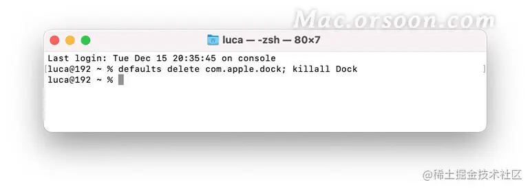 步骤 2.输入并执行以下命令:defaults delete com.apple.dock; killall Dock运行命令后,您应该能够再次看到 Dock 上的 Downloads 文件夹。另外,请注意,它会将所有设置恢复为默认值。如果要自定义 Dock,则需要再次更改设置。