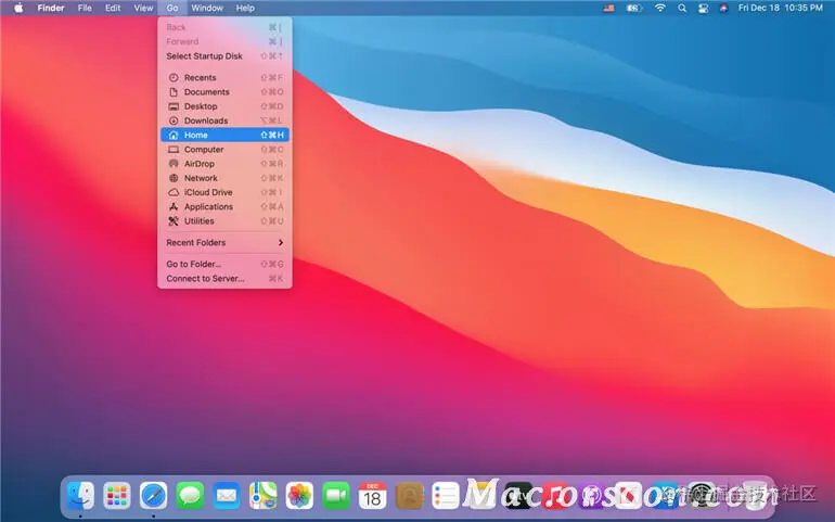 步骤 1.打开 Finder,请点击顶部菜单栏中的“前往”->“主页”。