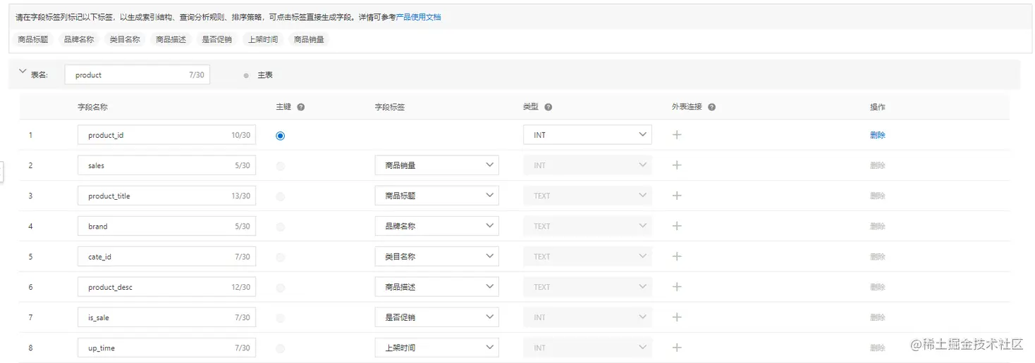 电商行业模板中以下字段是必须字段,类型、字段标签固定,字段名称可自定义: