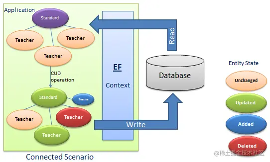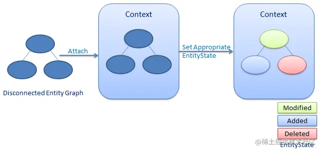 脱机状态持久化指读取和保存Entity在两个不同的DbContext中,Context2不知道Entity的更新状态,所以必需通知Context2当前的Entity做了何种更新。