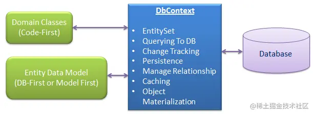 DbContext是EntityFramework很重要的部分,连接域模型与数据库的桥梁,是与数据库通信的主要类。