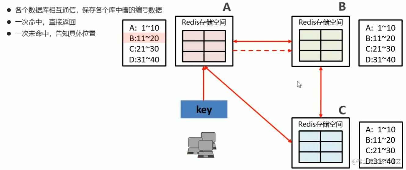 - 通过算法设计,计算出key应该保存的位置,CRC(key)%16384