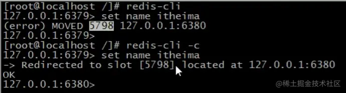 可以看到,只能使用redis-cli -c才能像单机那样使用redis