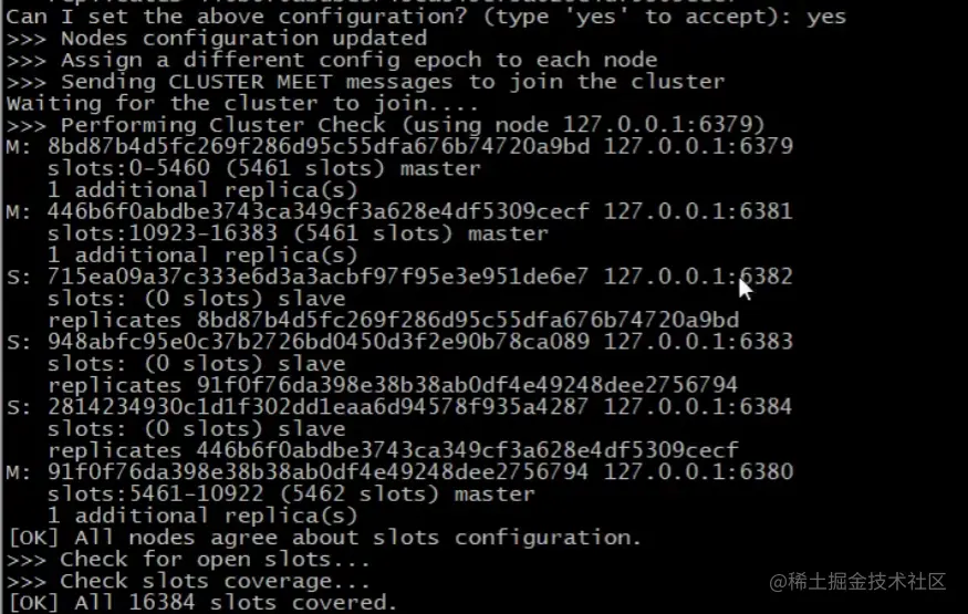 replicas 1表示一个master有一个slave
