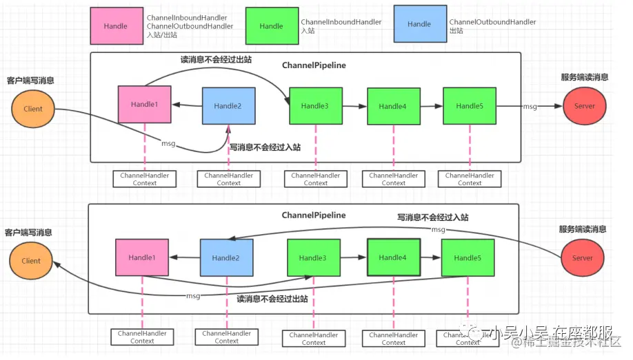 InboundHandler是按照Pipleline的加载顺序的顺序执行, OutboundHandler是按照Pipeline的加载顺序,逆序执行
