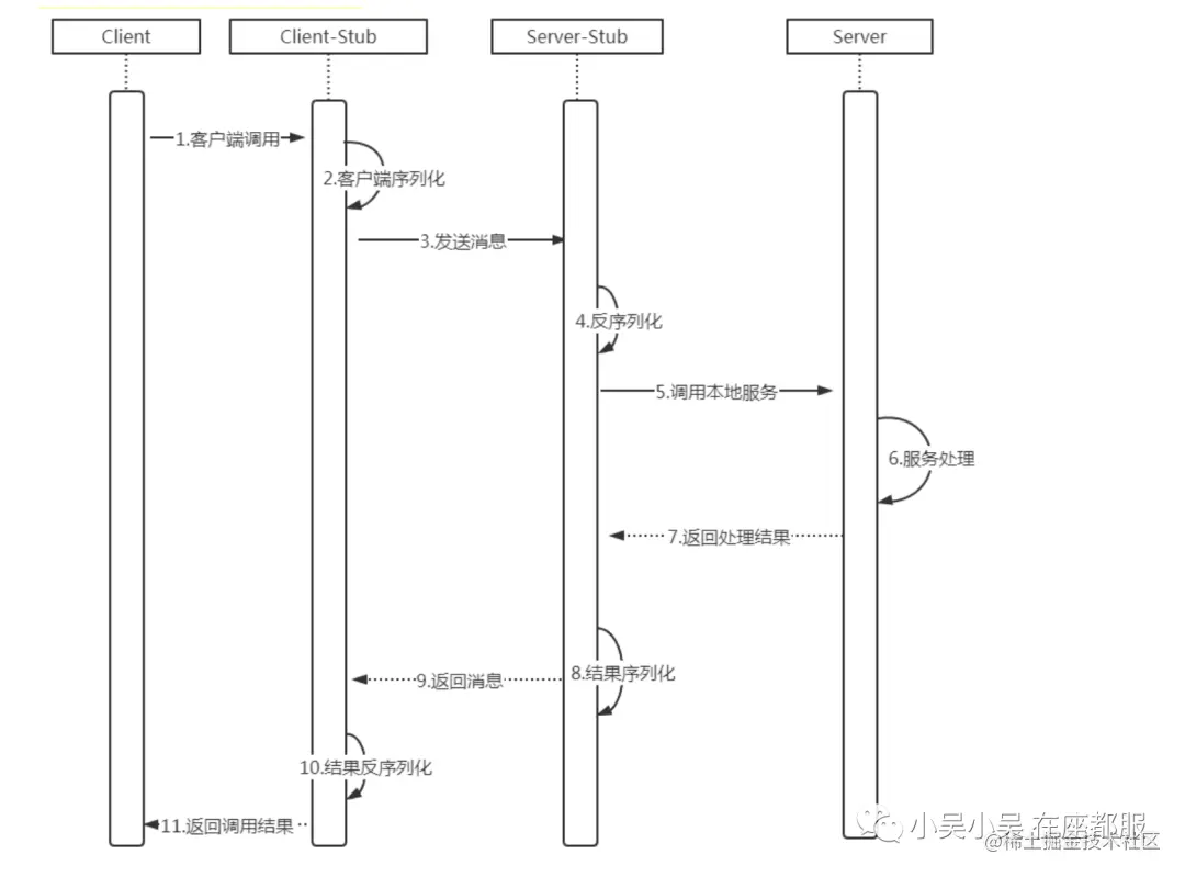 服务端存根(Server Stub),接收客户端发送过来的消息,将消息解包,并调用本地的方法。