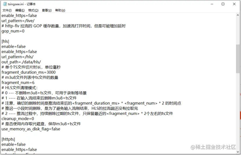 1)方法一:在用户不需要HLS流的情况下,将HLS的视频流关闭。打开tsingsee.ini,如图: