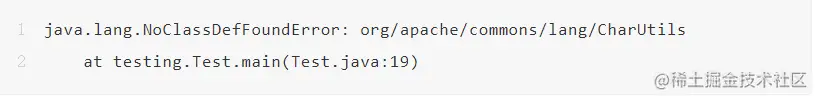 STEP2、如果不是静态代码块发生异常导致加载失败,异常message关键字中会明确显示缺失的类名称,例如: