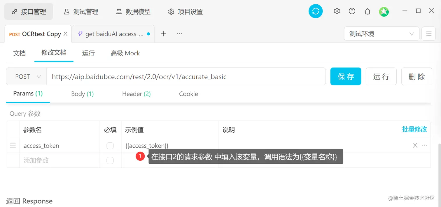 2)该字段会保存到项目设置中,同一环境,同一项目里的其他接口具有调用权限。 运行一下上图中的接口,可以看到该字段已经被提取到变量设置中了。