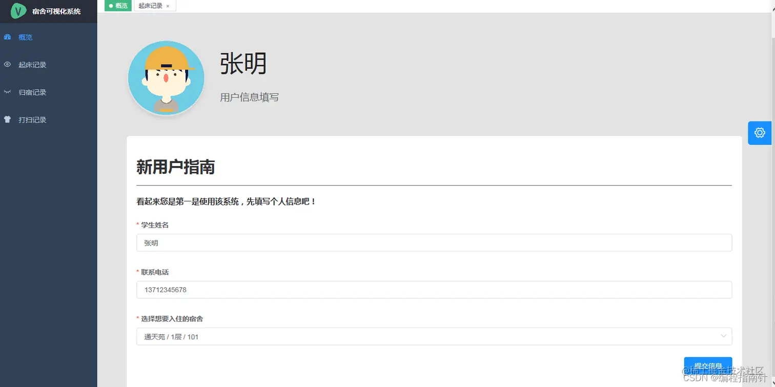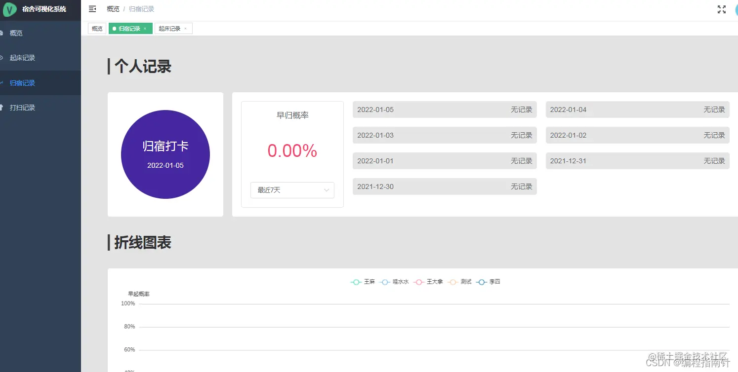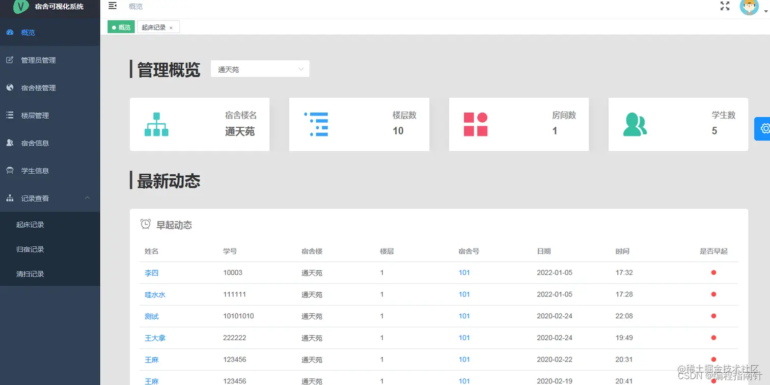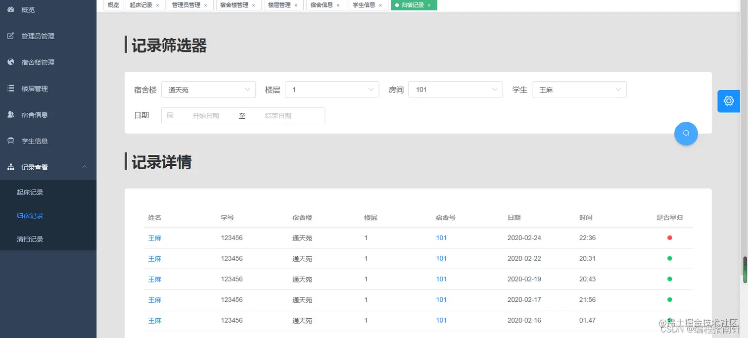 - 归宿登记(用于统计晚归情况)