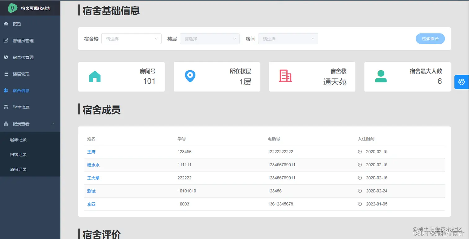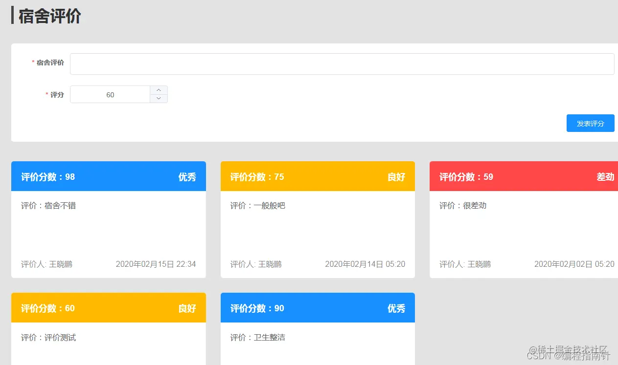 - 宿舍管理评分