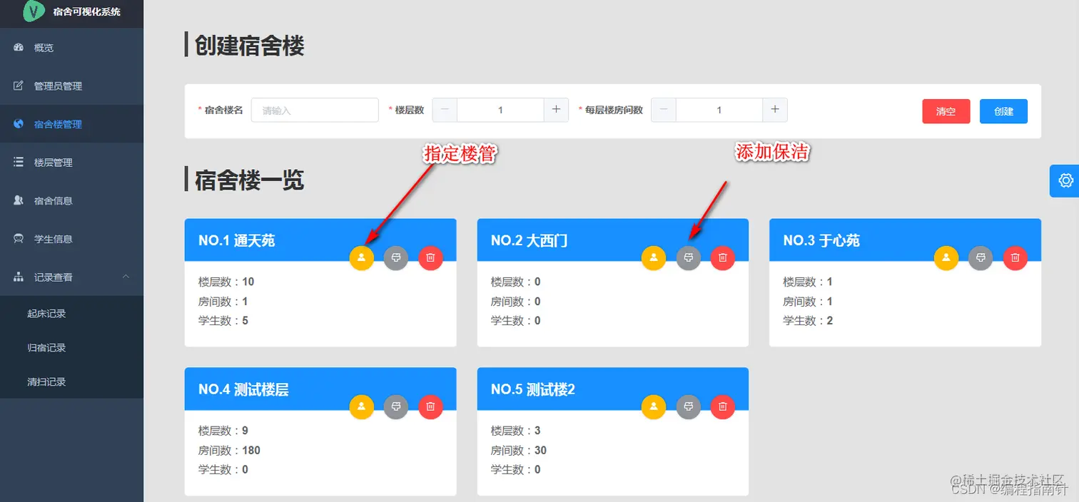 - 为宿舍楼分配管理员