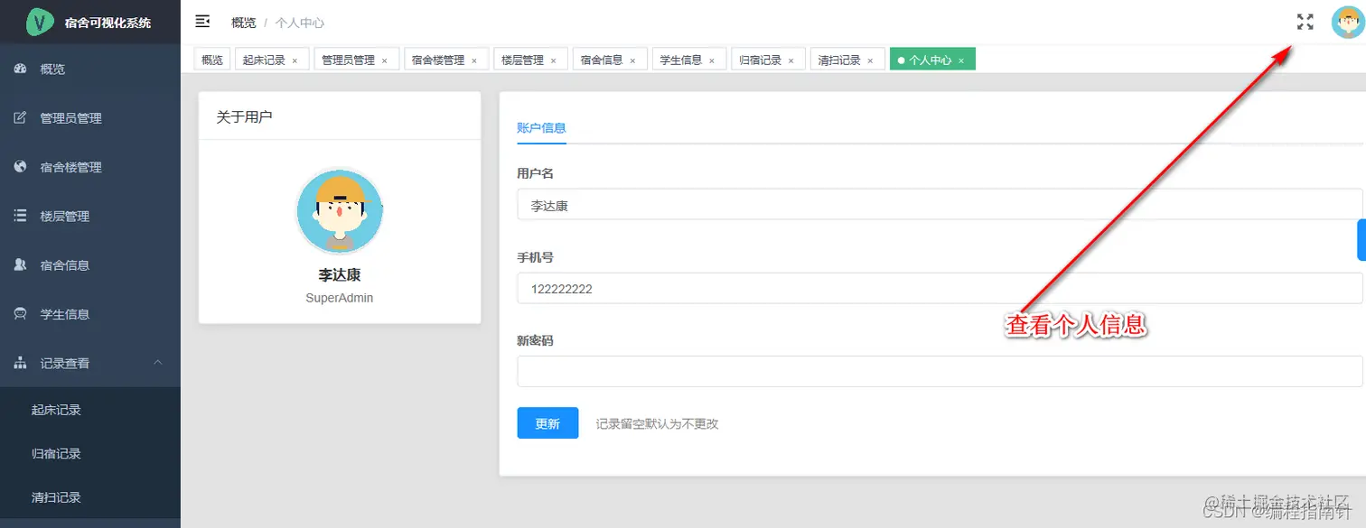 查看个人信息