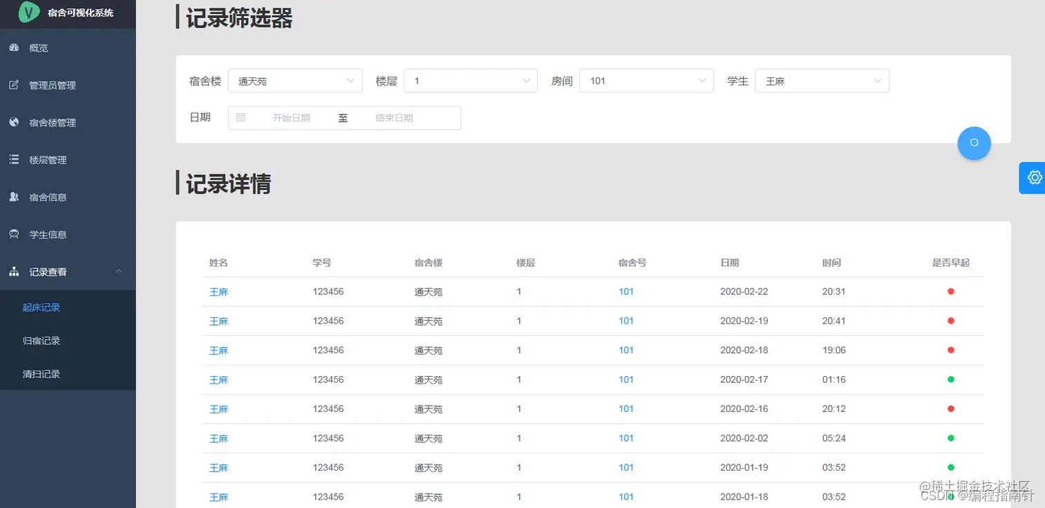 查看学生起床记录