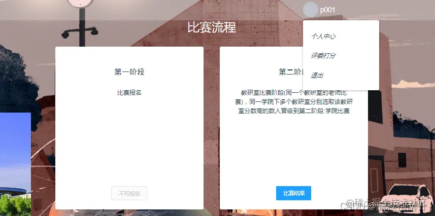 第一个阶段是:教研室比赛阶段(同一个教研室的老师比赛),同一学院下多个教研室分别选取该教研室分数高的数人晋级到第二阶段:学院比赛。