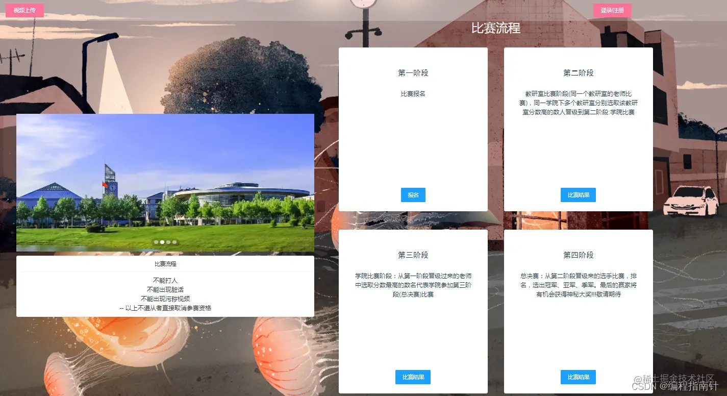 第二个阶段是:学院比赛阶段:从第一阶段晋级过来的老师中选取分数最高的数名代表学院参加第三阶段(总决赛)比赛