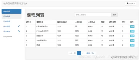 3,学生角色:可以进行选课,退课,查看选课信息,选课成绩,个人信息管理等