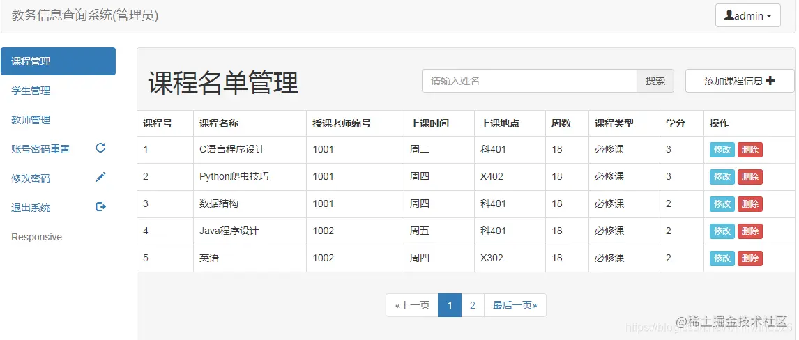 最近为客户开发了一套学校用教务管理系统,主要实现学生、课程、老师、选课等相关的信息化管理功能,今天拿出来给大家介绍一下: