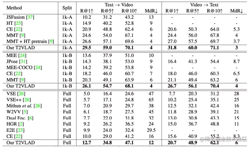 此外,T2VLAD直接将多模态的视频信息(声音、动作、场景、speech、OCR、人脸等)映射到同一空间,利用同一组语义中心来做聚类融合,计算同一中心的视频和文本特征的局部相似度,这在一定程度上解决了多模态信息难以综合利用的问题。T2VLAD在三个标准的Text-Video Retrieval Dataset上均取得了优异的性能。