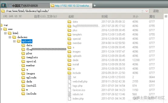 写入一句话木马需要我们知道网站的根目录相对于服务器的绝对路径。靶机在 /var/www/html/dedecms/uploads 这个目录下。