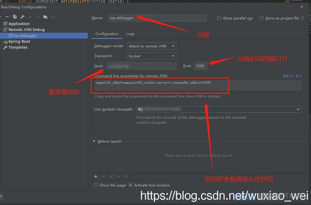 server=y:上图可知含义为 是否监听debugger 我们当然选择yes