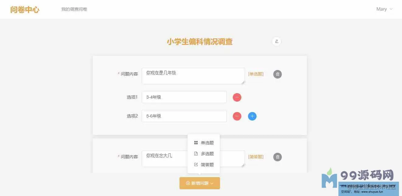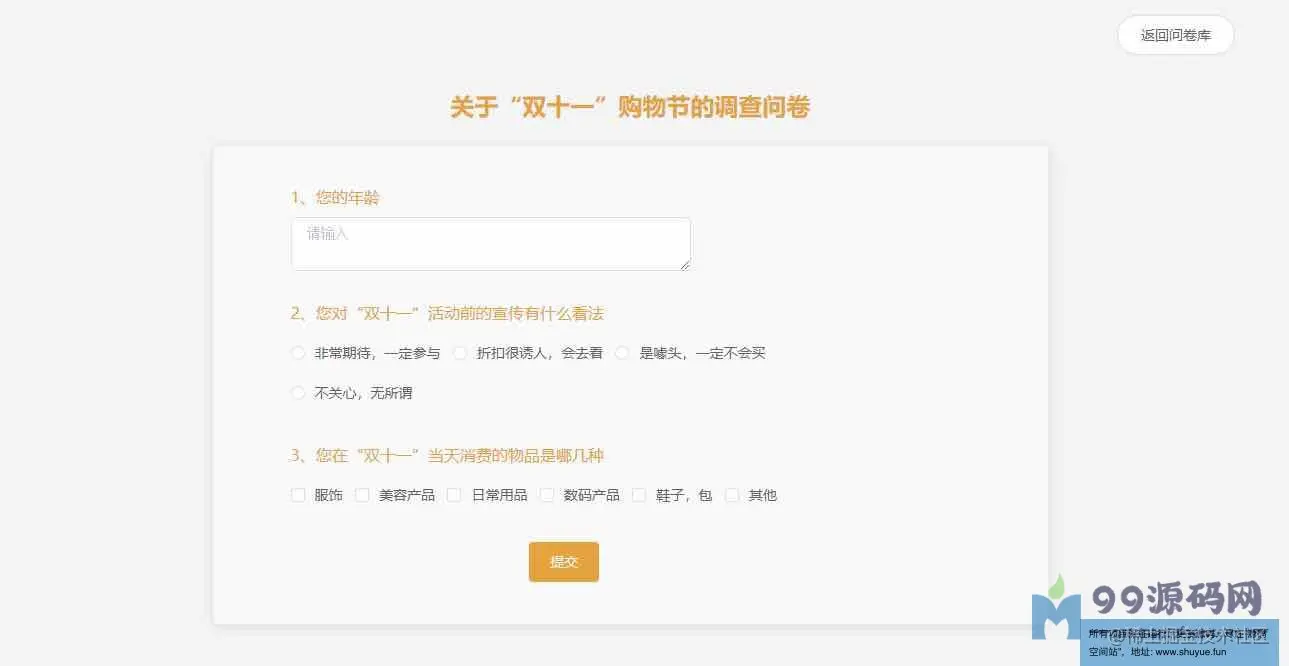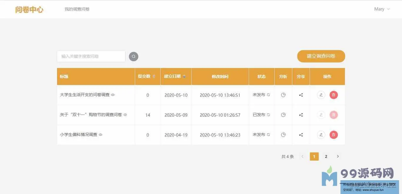 > * 本项目的在线问卷调查调查系统是基于SpringBoot开发的,采用了前后端别离形式来开发。