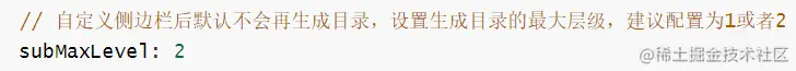 // 自定义侧边栏后默认不会再生成目录,设置生成目录的最大层级(建议配置为2-4)