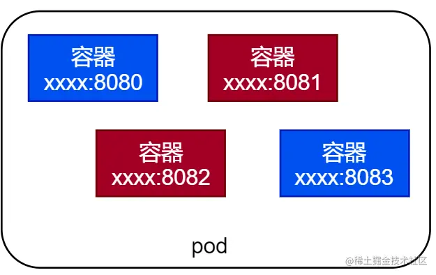 同一个 pod 中的容器是运行在相同的 Network 命名空间中的,因此他们对于 ip 地址和端口空间是共享的