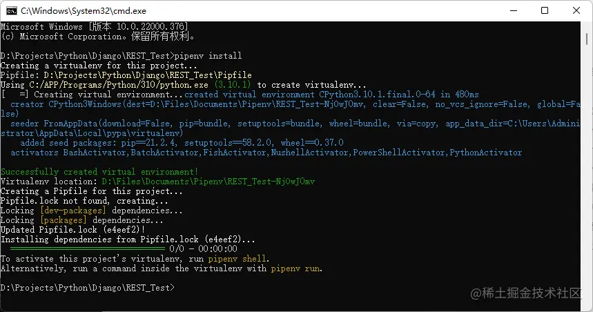 然后在cmd中执行pip install pipenv命令安装pipenv。