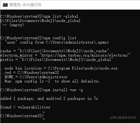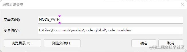 npm config set prefix "E:\Files\Documents\nodejs\node_global" //配置全局模块