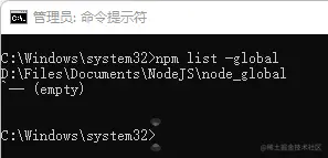 接着使用npm list -global命令查看是否配置成功:(记得首先新建文件夹,不然此命令会报错!)