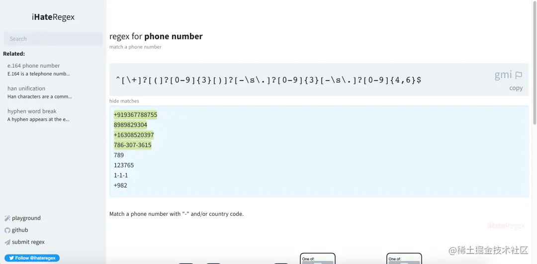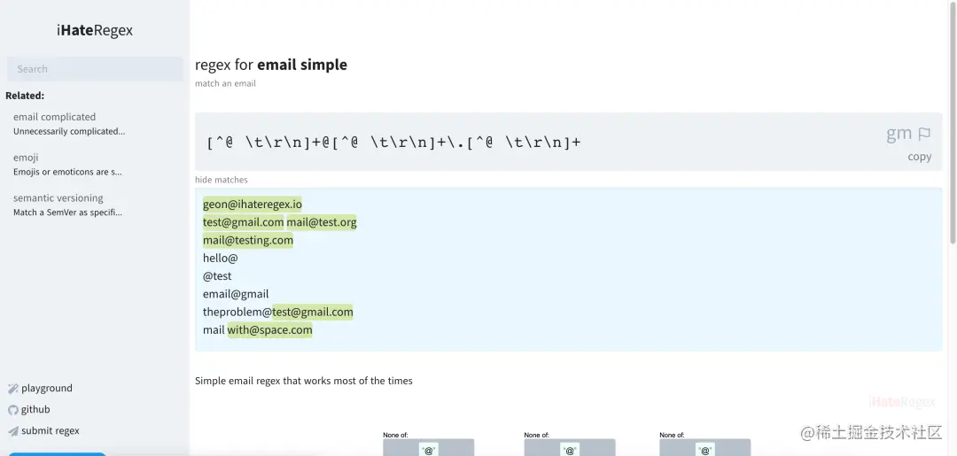 今天推荐一个开源项目,叫做:I hate regex。开源作者痛恨正则,决定搞一个正则表达式备忘录,开发了一个正则表达式搜索网站。