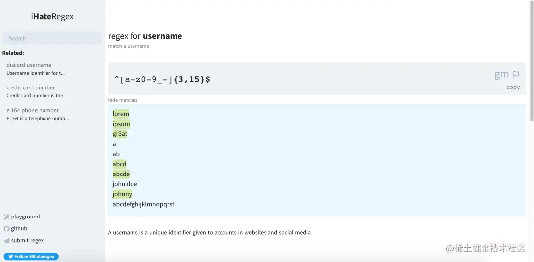 比如你搜索 username,就会显示 username 适用的正则表达式。