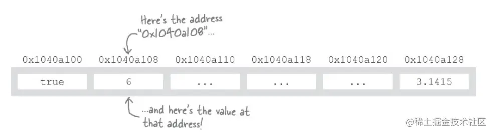 代表变量地址的值被称为指针,因为它们指向可以找到变量的位置。它们指向可以找到该变量的位置。
