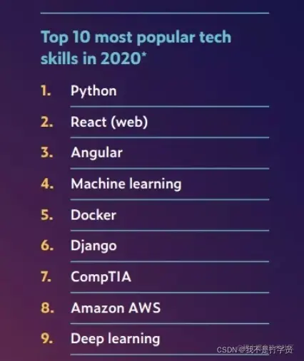 《2020年职场学习趋势报告》显示,在2020年最受欢迎的技能排行榜,Python排在第一
