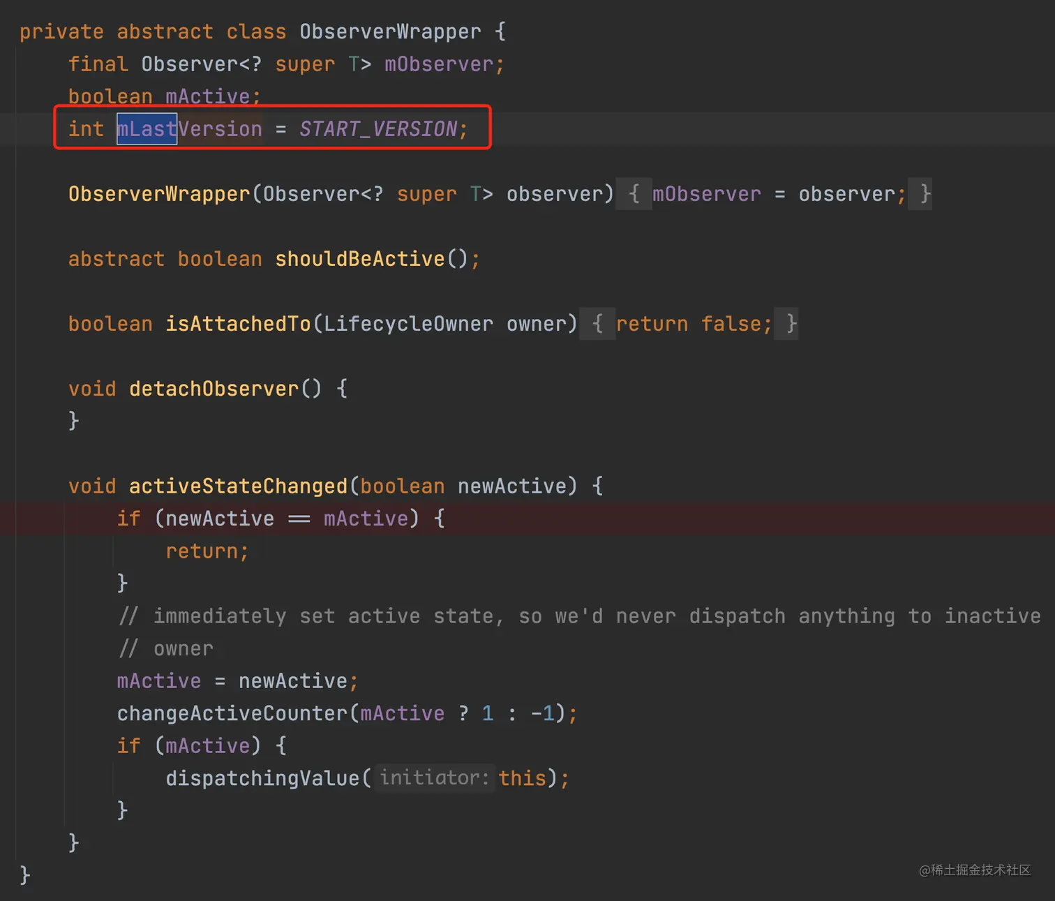 //将 mVersion的值 赋值给 mLastVersion 使其相等