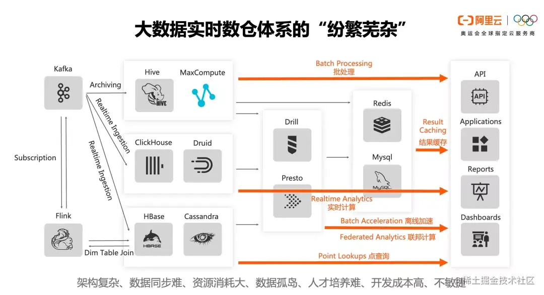 近几年,以ClickHouse、Apache Doris、阿里Hologres等为代表的实时数仓兴起,通过实时写入明细数据+灵活交互式查询部分实现了去Lambda架构,在实时性、灵活性、成本、管理和运维等多方面都达到了较好的平衡。