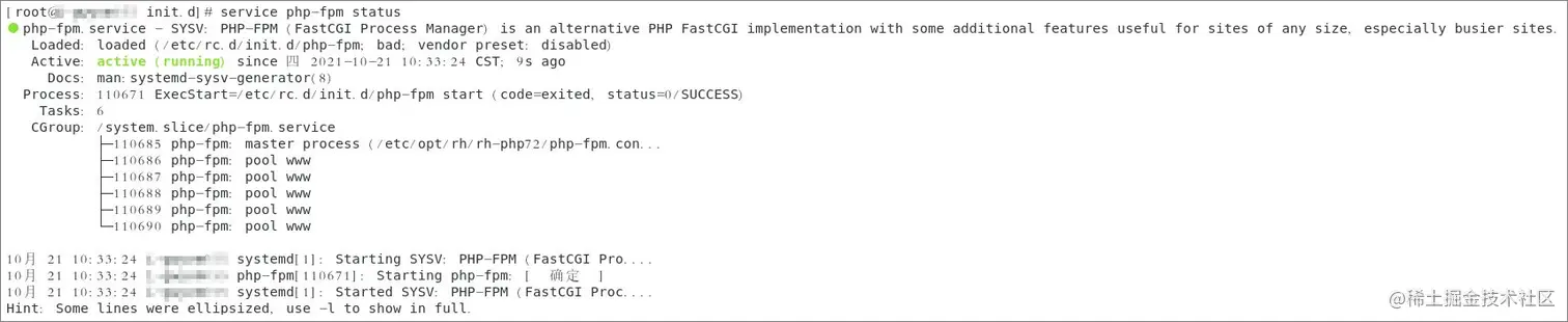 若启动失败,则通过查看服务状态来确定启动失败的原因: